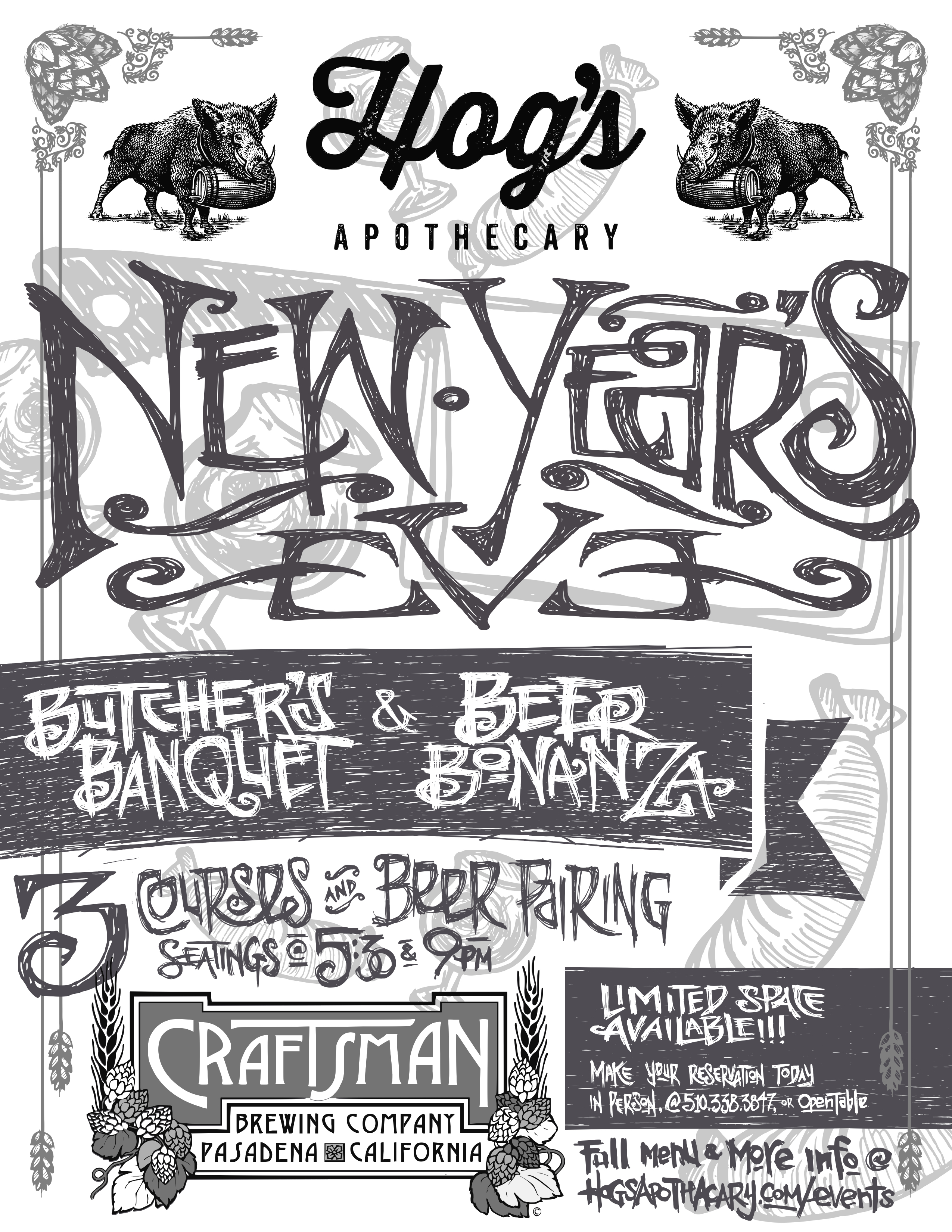 NYE Butcher’s Banquet & Beer Bonanza • Hog’s Apothecary x Craftsman Brewing Co. (Oakland, CA)